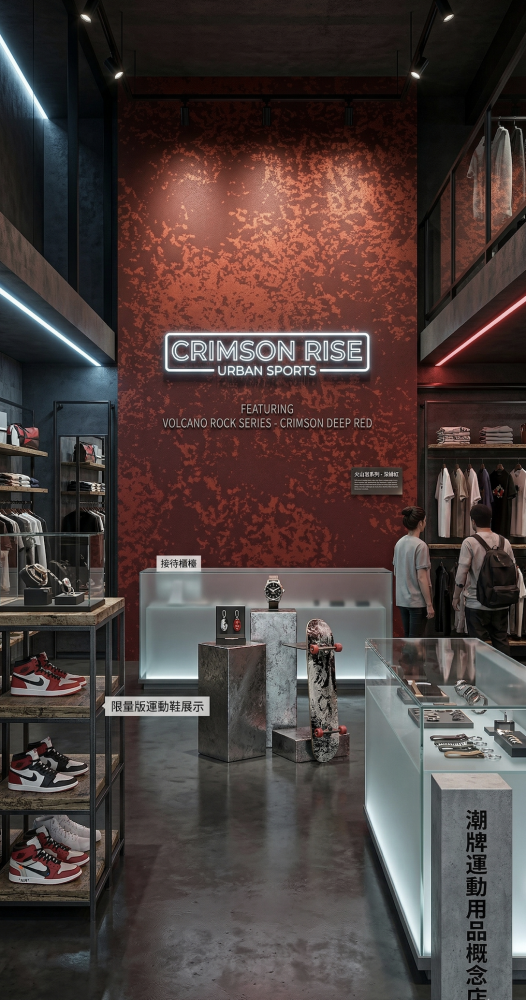 適合應用在潮牌運動用品概念店的展示牆面、高端休閒吧台立面、或是充滿設計感的辦公空間會議室背牆,能輕易營造出充滿個性、前衛且具深度視覺感的氛圍。